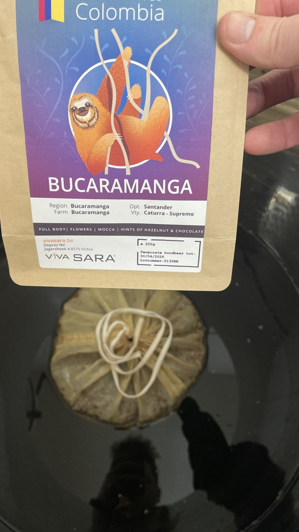 Daarna hebben we met koffiebonen van Viva Sara de bonen laten macereren in de mede. Zo krijg je veel koffie aroma bovenop rum en honingsmaak.